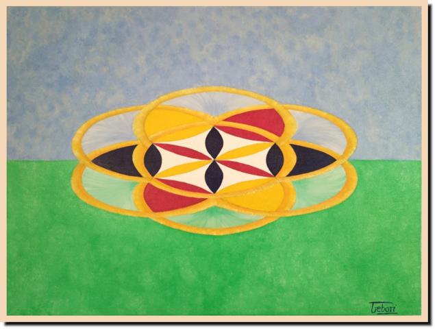 Veda - SYMBOL OF CREATION - FLOWEROF LIFE - AXIS MUNDI - HEAVEN MIDSPACE EARTH - 2021 | Oil on cotton, 39" x 29" | 100cm x 75cm